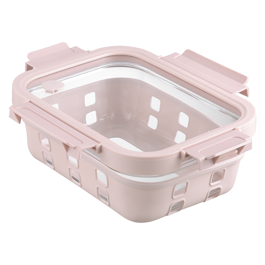 Контейнер стеклянный в чехле из силикона отлично подходит для хранения, запекания и транспортировки продуктов, в том числе готовых блюд. Емкость из боросиликатного стекла не впитывает запахи и загрязнения, легко моется. Крышка с надежными пластиковыми замками на каждой стороне обеспечивает плотное закрывание. Материалы не содержат бисфенол-А и являются абсолютно безопасными для здоровья. Наличие специального вентиляционного отверстия позволяет выпустить лишний воздух или горячий пар, что повышает герметичность и улучшает условия хранения продуктов. Силиконовый чехол без труда снимается для более тщательной очистки контейнера.