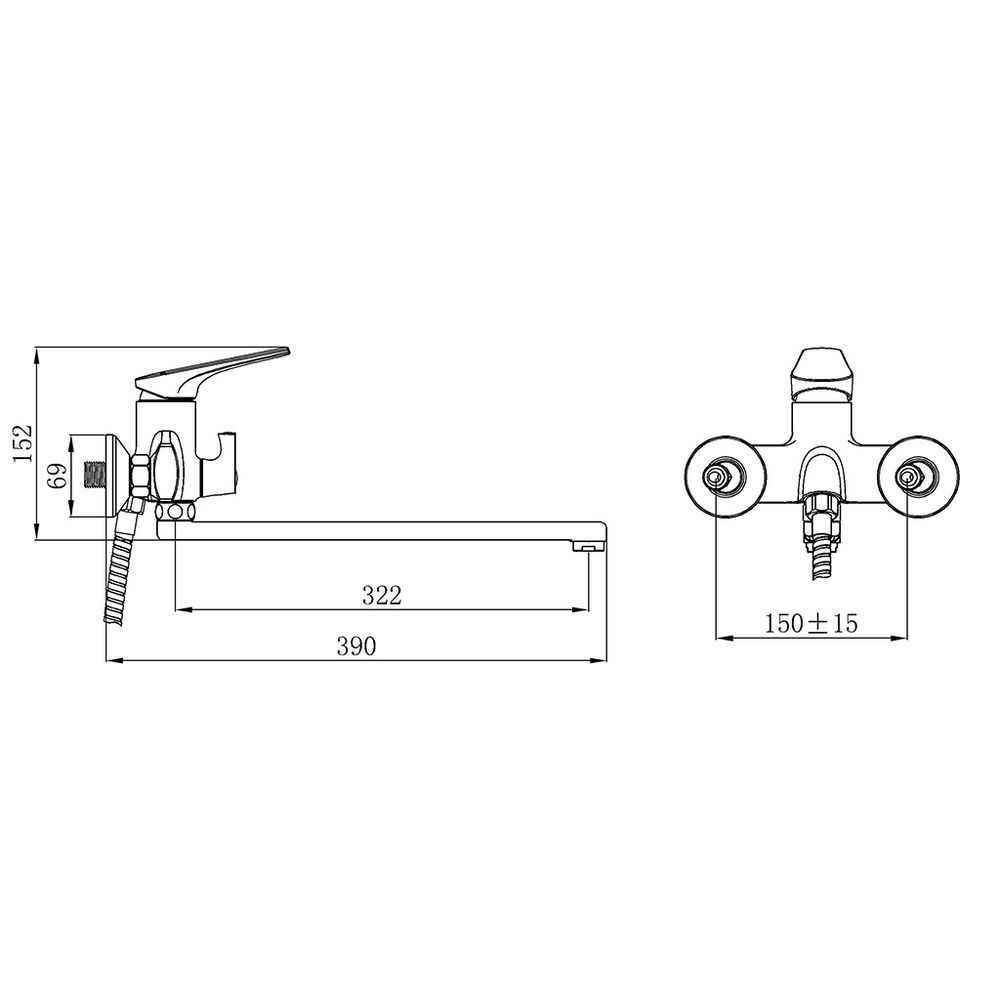 Смеситель для ванны, РМС, с картриджем, хром, SL122-006E