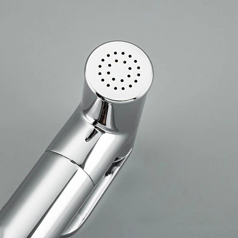 Данный прибор выполнен в модном современном оформлении, оригинальная модель в дизайнерском исполнении. Материал данного прибора - латунь, надежный красивый материал высочайшего качества, который обеспечивает великолепное напыление хромированного покрытия. Модель привычной округлой формы. Данная модель изливом не оснащена. Прибор с функцией душа и традиционным изливом. Вы можете переключать смеситель между обычным и душевым режимом посредством нажатия на специальную кнопку на корпусе прибора. Установка данной модели выполняется на два отверстия.