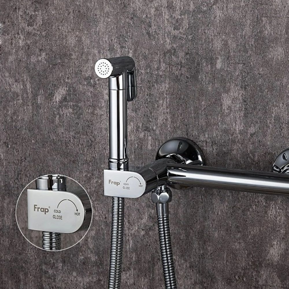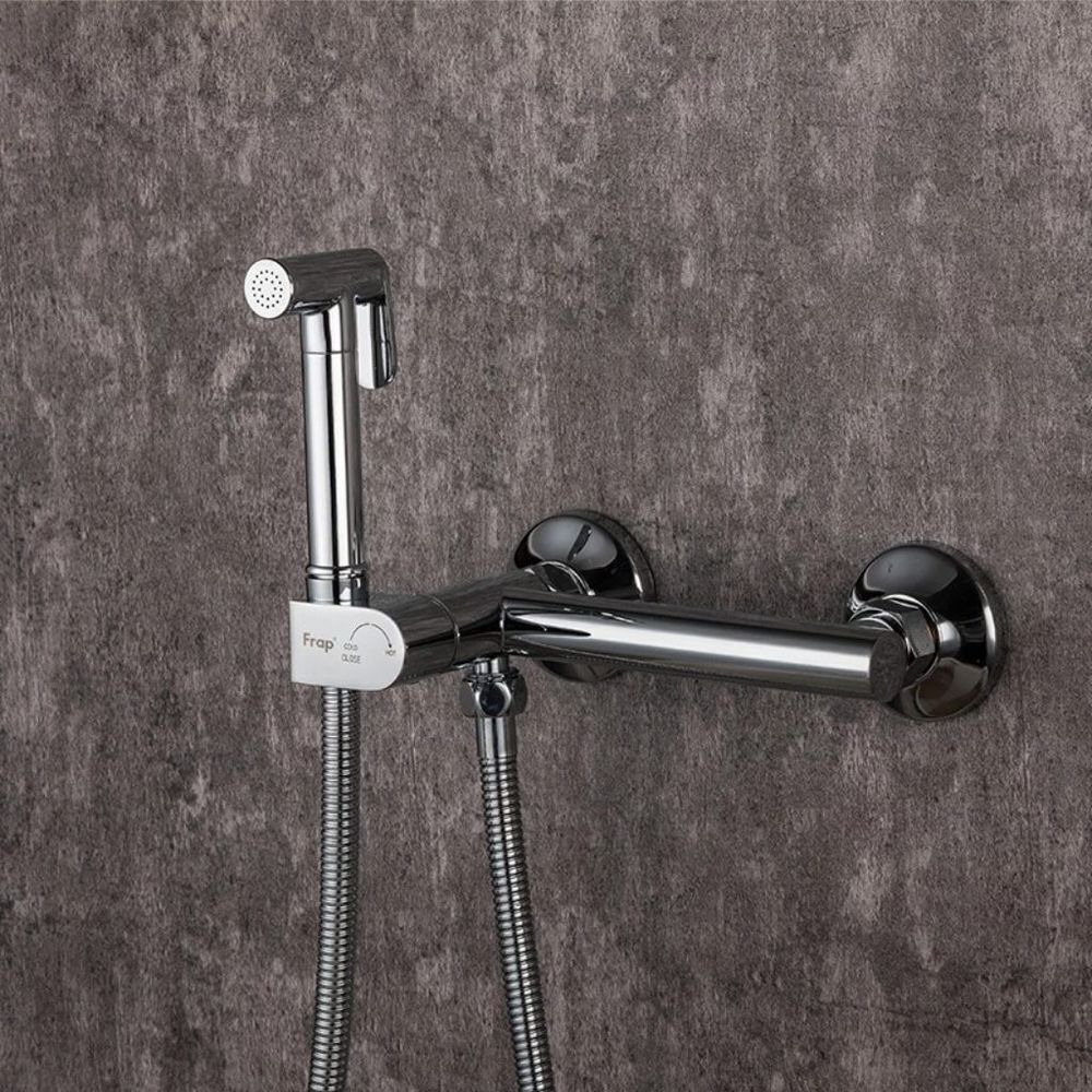 Смеситель с гигиеническим душем Frap F7510, модель позволяет легко контролировать напор и температуру воды, посредством однорычажного управления. Настенный прибор – традиционный вариант, который на текущий момент времени чаще всего ставится в ванных комнатах. Помимо излива такие модели могут оснащаться выходом на душевой шланг.