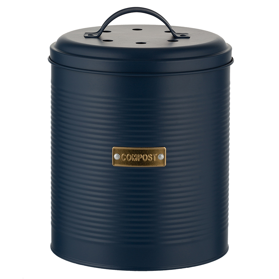 Контейнер для пищевых отходов Otto поможет в поддержании порядка на кухне и сортировке мусора. Изделие выполнено из прочной, устойчивой к коррозии и деформации углеродистой стали. Емкость объемом 2,5 л плотно закрывается крышкой и не занимает много места. Специальный угольный фильтр предотвращает распространение неприятных запахов. Внутренний отсек легко извлекается для тщательной очистки. Рельефная поверхность и красивое сочетание золотистого декора с матовым покрытием насыщенного синего цвета делает дизайн интересным. Такой аксессуар отлично вписывается в интерьер, оформленный в классическом и современном стиле. В комплект входит запасной угольный фильтр.