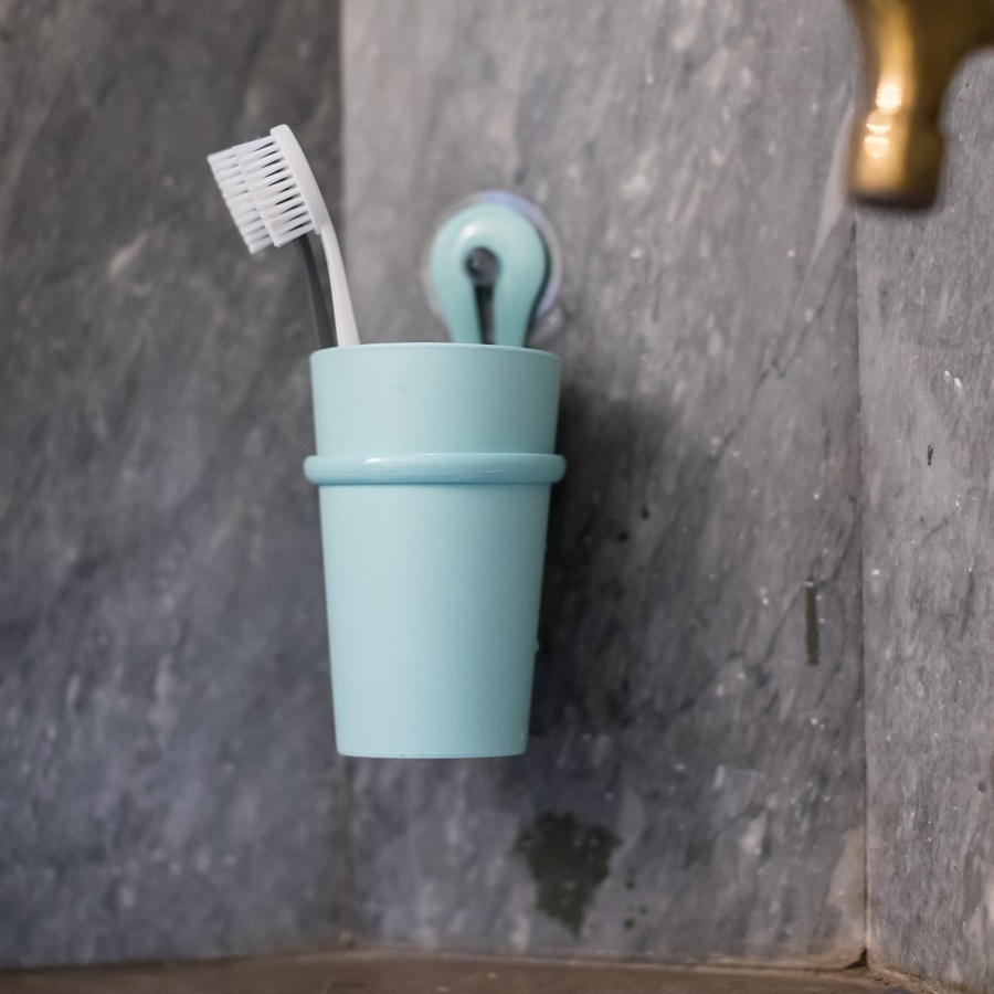 Стакан для зубных щеток на присоске LOOP – удобная, легкая и функциональная модель, предназначенная для зубных щеток и пасты. Емкость оборудована специальным держателем на присоске, с противоположной стороны которого расположено кольцо. Изделие можно закрепить на кафельной, окрашенной, отделанной пластиком стене ванной или любой другой комнаты. Особенности: - стильный дизайн и расцветка - материал изготовления – полипропилен. Производство: Германия