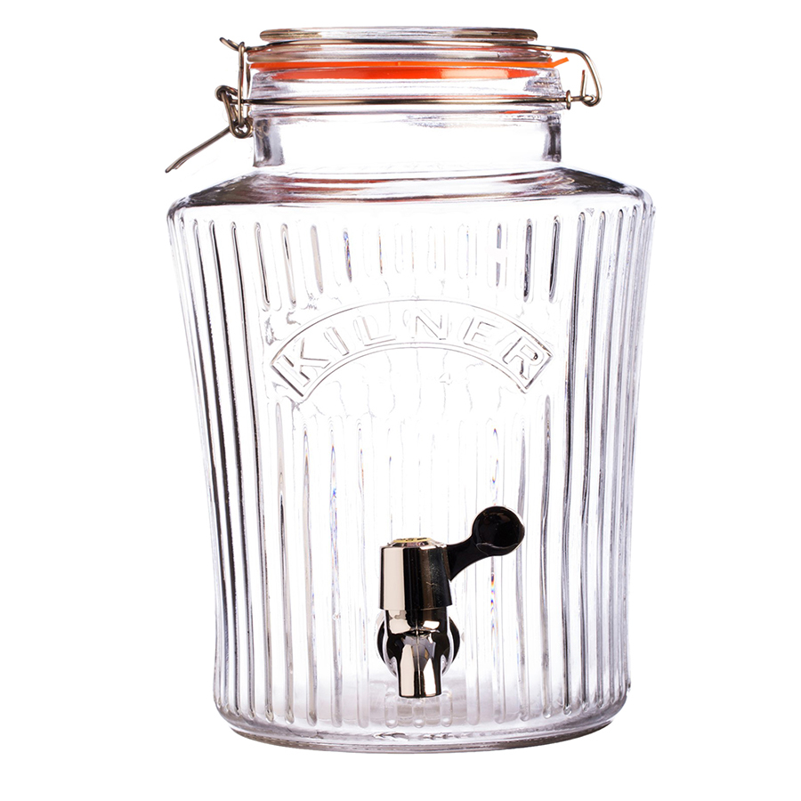 Диспенсер объёмом 8 литров незаменим для вечеринок дома или на открытом воздухе. Он отлично подойдет для сервировки любых освежающих напитков: сок, лимонад, фруктовая вода, пунш, лонг-айленд ти, мохито. Диспенсер выполнен в ретро-стиле из стекла и украшен большим логотипом бренда Kilner. Он оснащен краном из нержавеющей стали и удобной плотно закрывающейся крышкой. Диспенсер для холодных напитков особенно пригодится в жаркое время года.