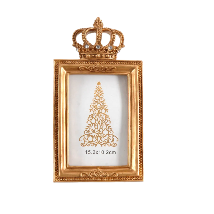 Нарядная золотистая фоторамка с короной подчеркнёт знаковость момента на снимке. Такая композиция станет эффектным элементом декора.