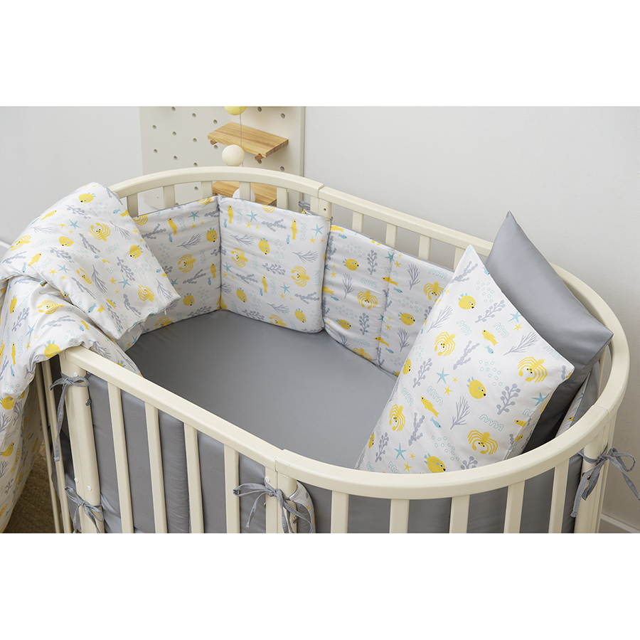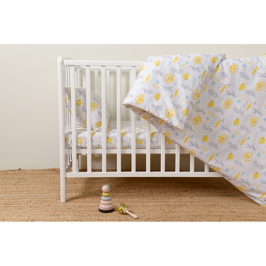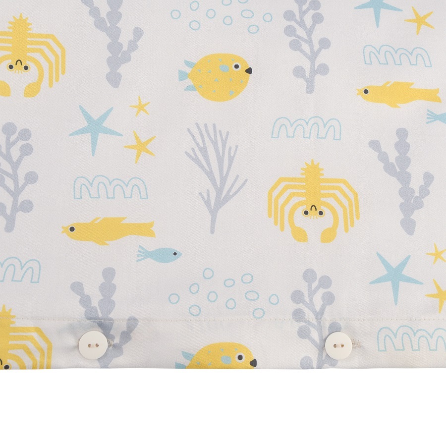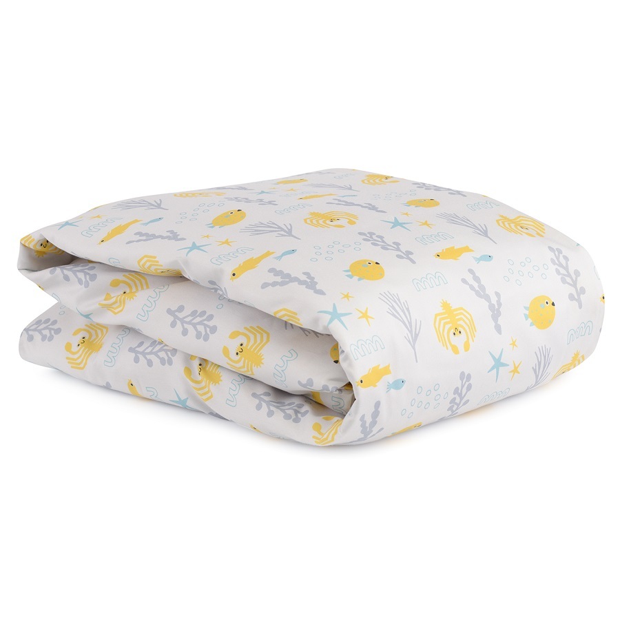 Комплект постельного белья из сатина с принтом Oceania world из коллекции Tiny world разбавит однотонный текстиль и украсит любую детскую комнату. Изображения морских обитателей могут стать темой для увлекательных разговоров даже с маленькими детьми. Сатин плотностью 210 ТС приятен на ощупь, хорошо впитывает влагу и пропускает воздух, обладает естественным блеском и не теряет внешний вид даже после множества стирок.