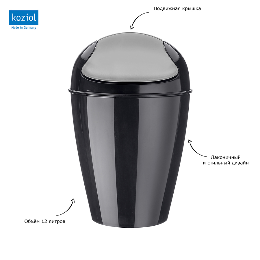 Вместительная корзина для мусора Del поможет навести порядок на кухне и в ванной. Емкость из переработанного полипропилена классического черного цвета отличается лаконичным дизайном и устойчивостью к износу. Практичный материал обеспечивает изделию долговечность, легко очищается от всевозможных загрязнений. Модель с поворотной крышкой удобная в использовании.