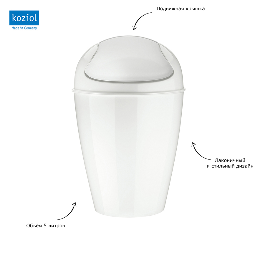 Корзина для мусора с крышкой del, 5 л, белая