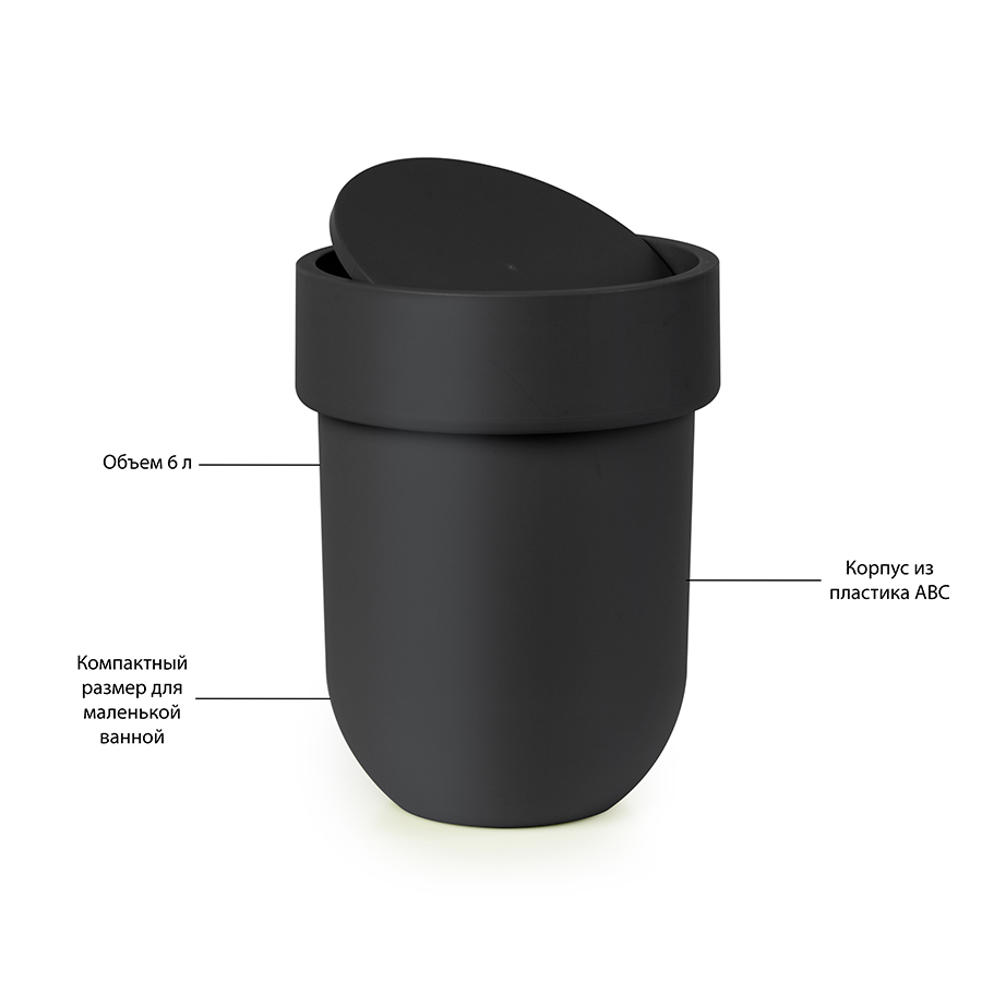 Корзина для мусора с крышкой touch, 6 л, черная