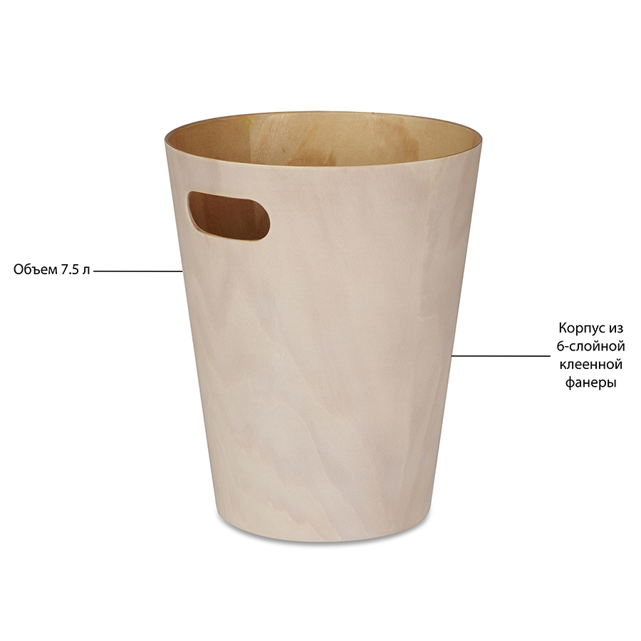 Корзина для мусора woodrow, 7,5 л, белая/дерево