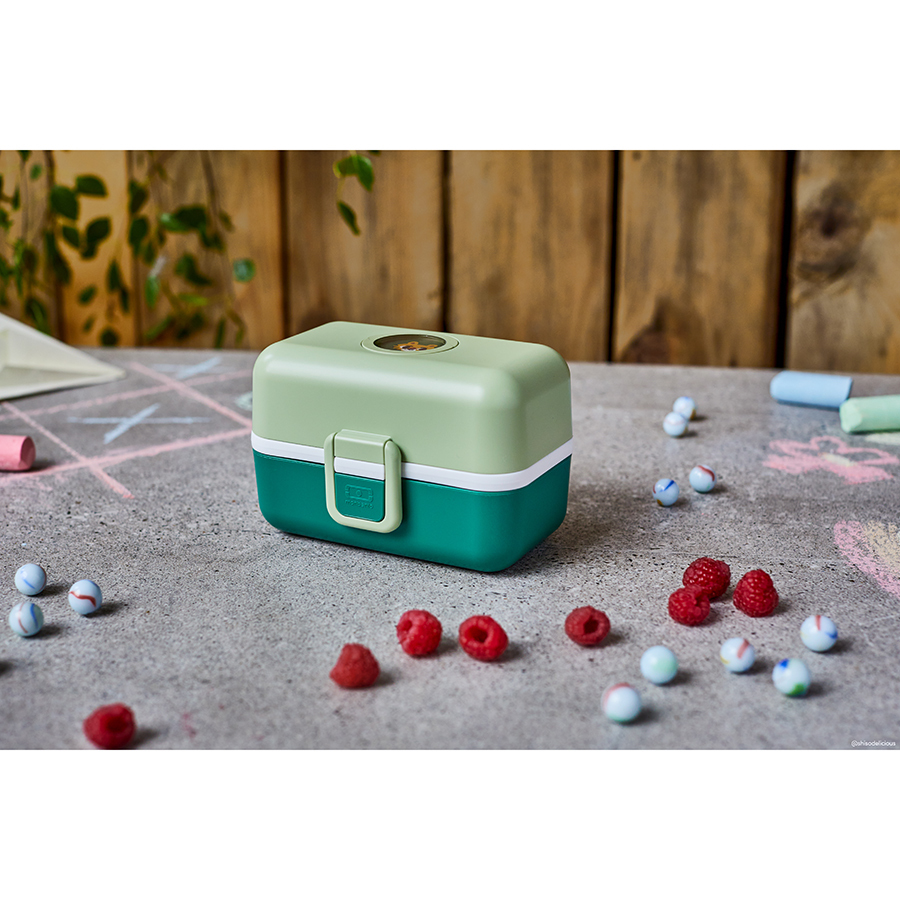 Герметичный ланч-бокс идеален для транспортировки салатов, сэндвичей и других блюд. Компактный контейнер объемом 800 мл с тремя съемными секциями не займет много места в сумке или рюкзаке. Ланч-бокс изготовлен из качественного пищевого пластика PBT (полибутелентерефталат), который полностью безопасен как для человека, так и для окружающей среды. PBT не содержит бисфенол-А и другие вредные вещества, а также легко перерабатывается. Надежный замок обеспечивает полную герметичность. Контейнер можно хранить в холодильнике, мыть в посудомоечной машине, но нельзя помещать в микроволновую печь.