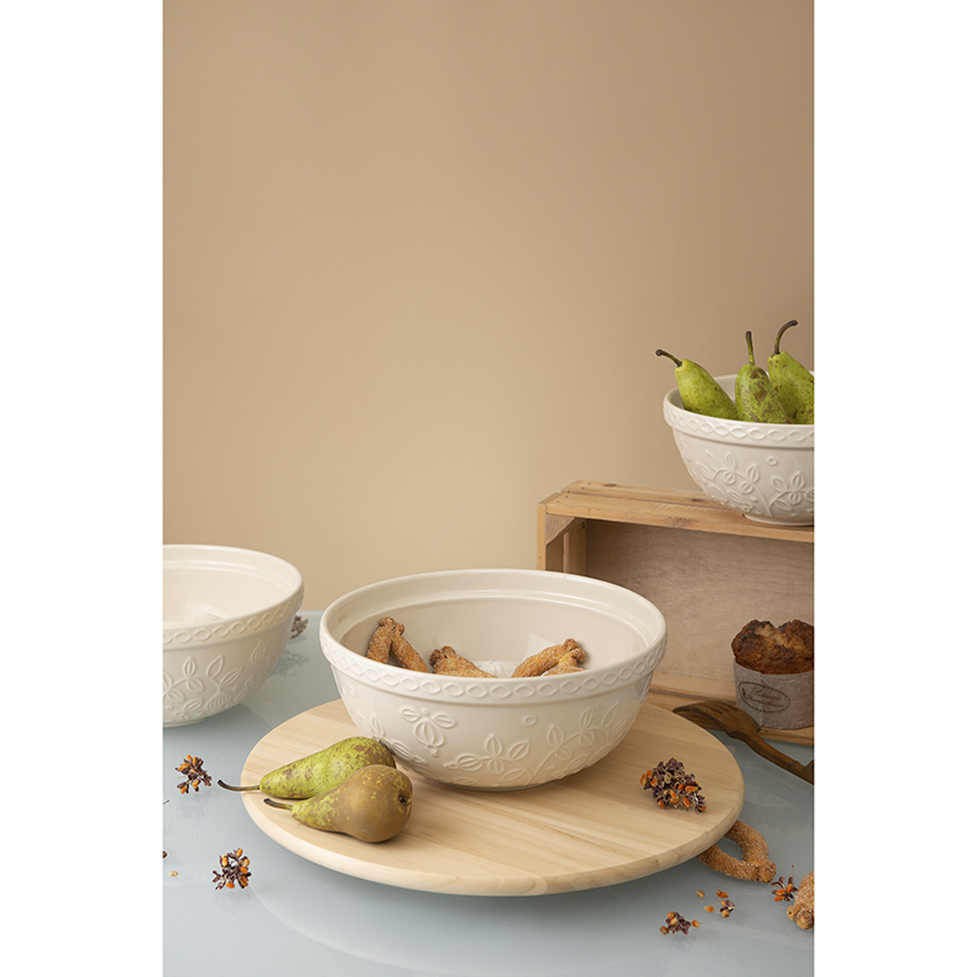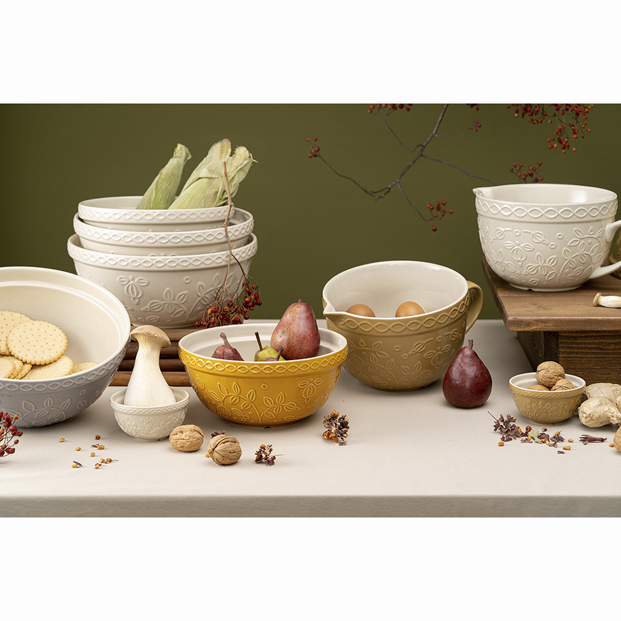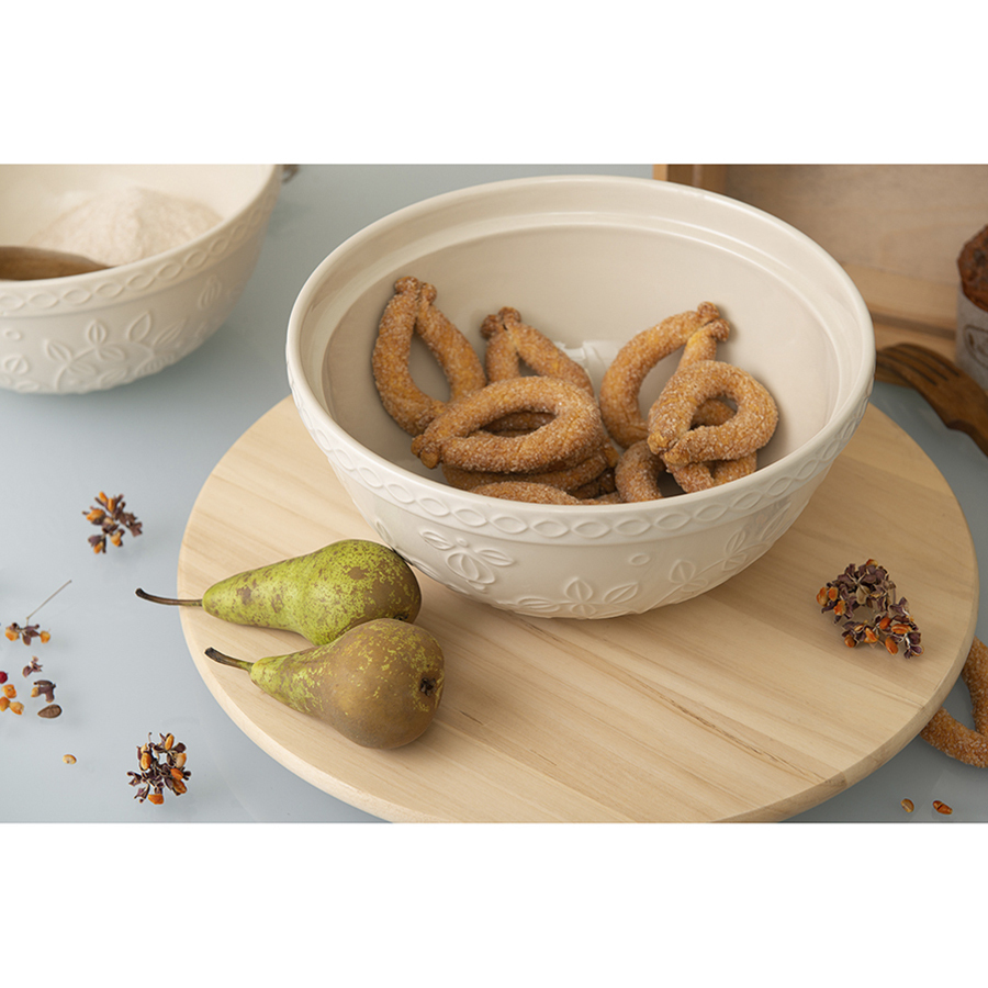 Миска кремового цвета Ягоды Тайги из коллекции Russian North облегчит процесс приготовления блюд, сделает кухонный интерьер более уютным и выигрышно подчеркнет выбранное стилевое решение. Глубокая чаша идеально подойдет для замешивания теста, смешивания ингредиентов, а также для складывания мытых овощей и фруктов и подачи их к столу. Глазурованная поверхность с чуть приглушенным глянцем выглядит благородно и вместе с тем очень практична – не повреждается при использовании и легко отмывается. Рельефный растительный узор в виде стилизованных веточек с ягодами и листьями делает дизайн интересным и запоминающимся. Миска, выполненная из прочной каменной керамики и покрытая глянцевой глазурью, устойчива к сколам и царапинам. Объем: 2,8 л. ! Можно использовать в микроволновой печи. ! Можно мыть в посудомоечной машине. ! Можно использовать в духовке при температуре не более 160° C. ! Можно замораживать.