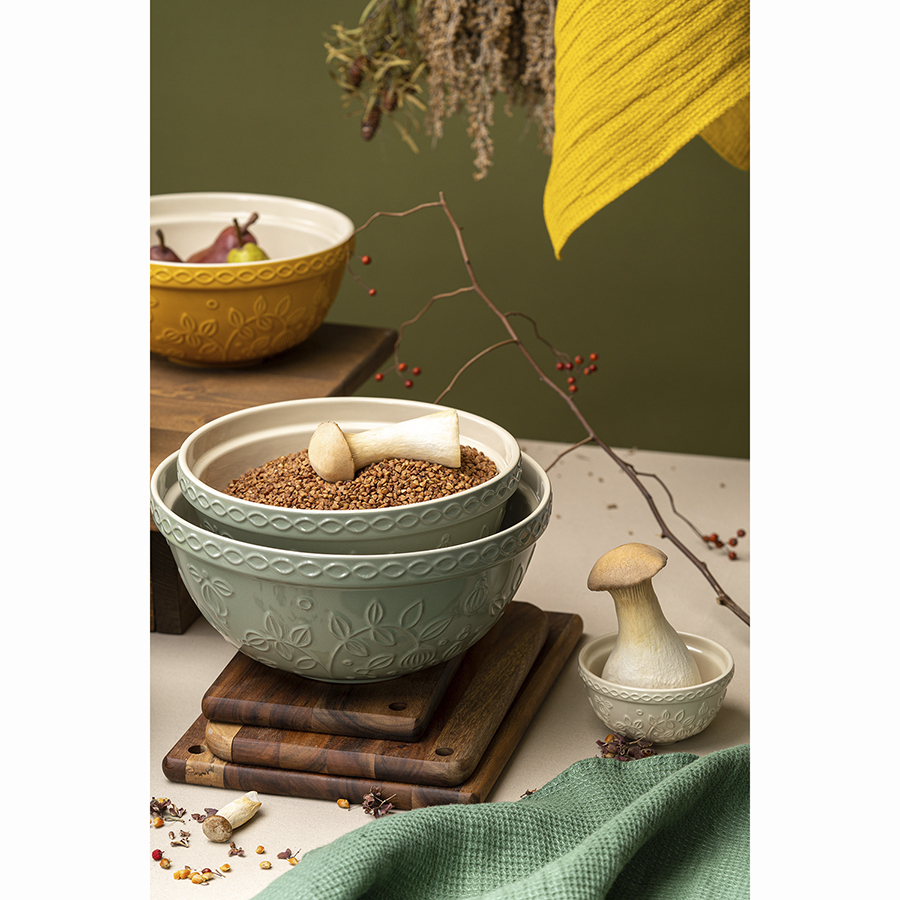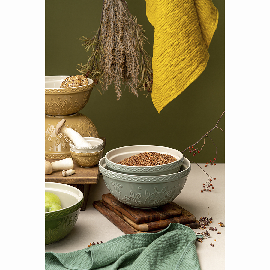 Миска серо-мятного цвета с рельефным узором Ягоды Тайги из коллекции Russian North облегчит процесс приготовления блюд и подойдет для сервировки. Посуда предназначена для замешивания теста, смешивания ингредиентов, а также подачи салатов или фруктов. Изделие украшено рельефным растительным узором в виде стилизованных веточек с ягодами и листьями.