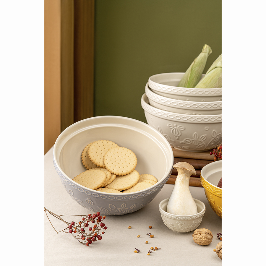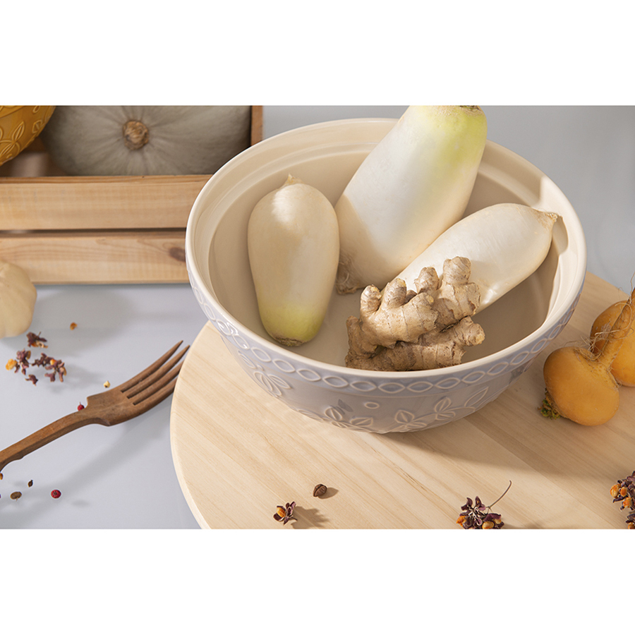 Миска серого цвета с рельефным узором Ягоды Тайги из коллекции Russian North облегчит процесс приготовления блюд и подойдет для сервировки. Посуда предназначена для замешивания теста, смешивания ингредиентов, а также подачи салатов или фруктов. Изделие украшено рельефным растительным узором в виде стилизованных веточек с ягодами и листьями.