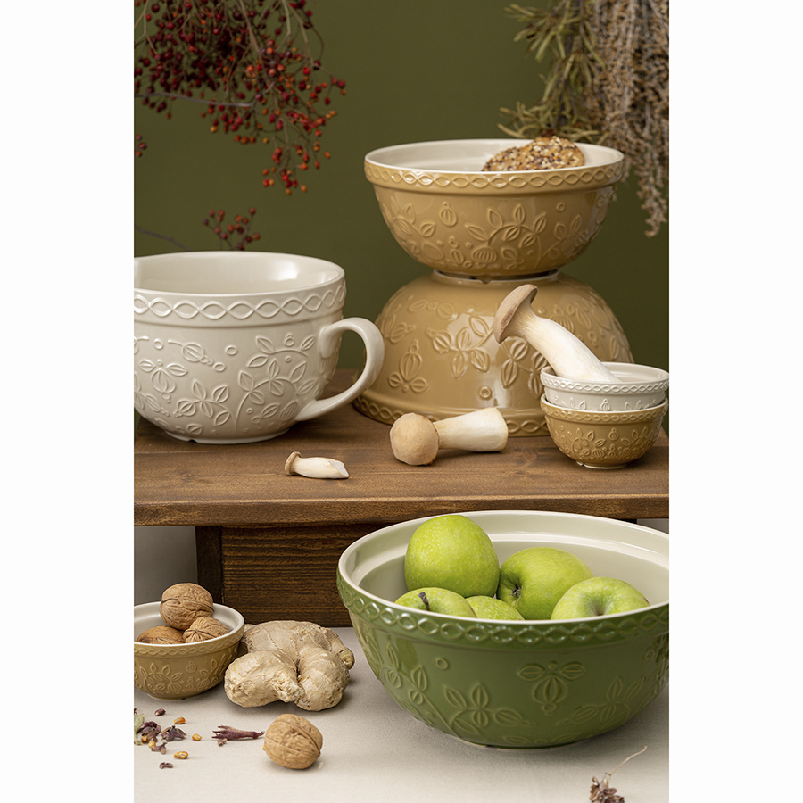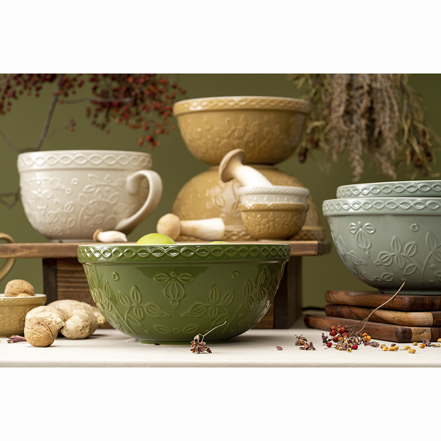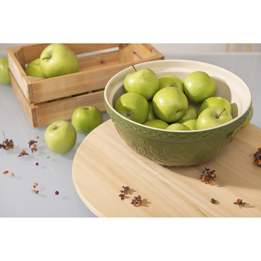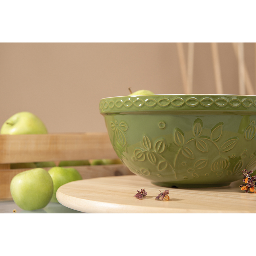 Миска зеленого цвета с рельефным узором Ягоды Тайги из коллекции Russian North облегчит процесс приготовления блюд и подойдет для сервировки. Посуда предназначена для замешивания теста, смешивания ингредиентов, а также подачи салатов или фруктов. Изделие украшено рельефным растительным узором в виде стилизованных веточек с ягодами и листьями.