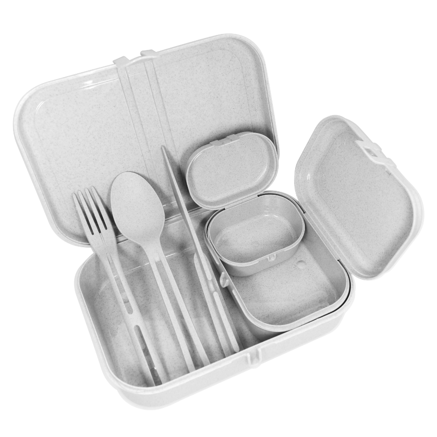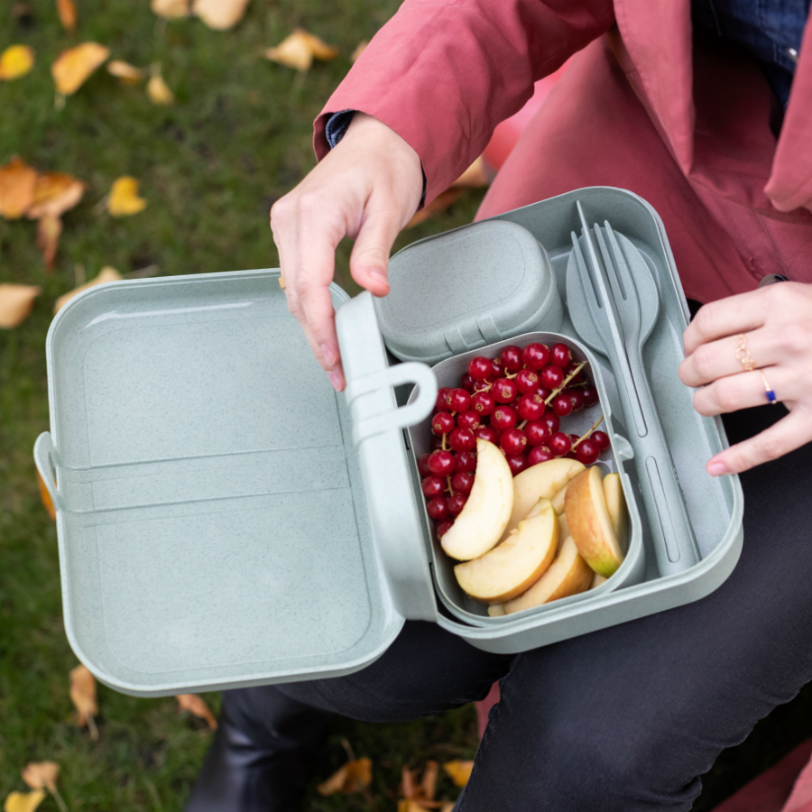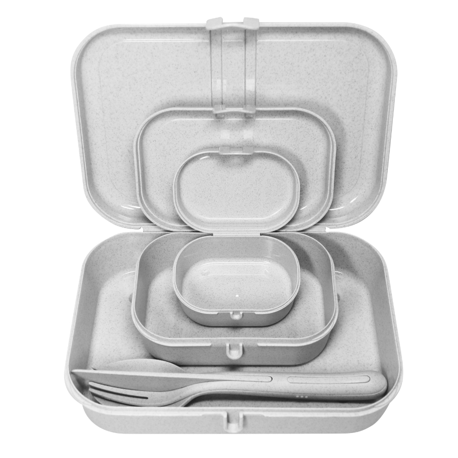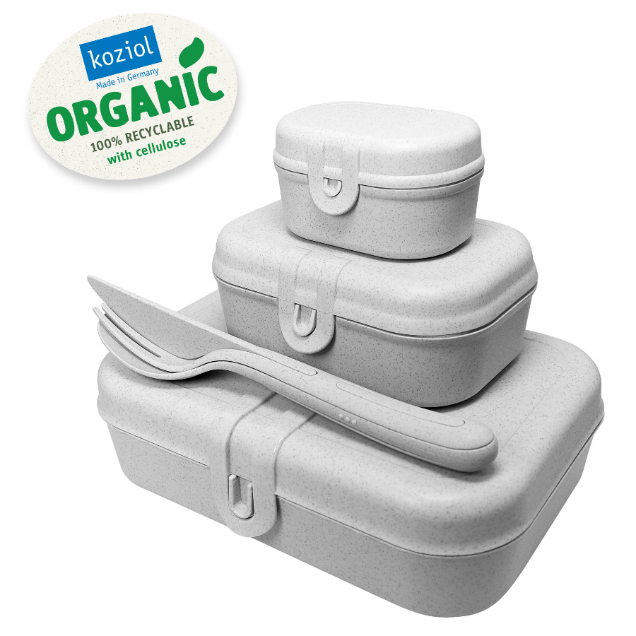 Набор из 3 ланч-боксов и столовых приборов PASCAL Organic – идеальный вариант для путешествий и пикников. Емкости разного объема вмещают бутерброды, орехи, печенье, фрукты и другие закуски. Также в комплектацию входят столовые приборы Klikk, которые складываются один в один, не занимая много места. Все элементы выполнены из экологически чистого и пригодного для вторичной переработки материала, созданного на основе целлюлозы и термопластика. Благодаря этому изделия безопасны для пищевых продуктов и отличаются прочностью и долговечностью.