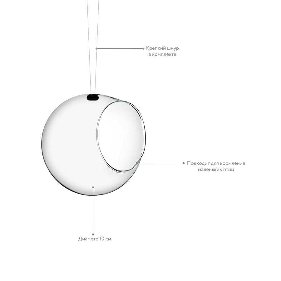 В дне каждой кормушки есть отверстие для циркуляции воздуха, чтобы корм не прел в сырую погоду. Легко установить в любом месте, в наборе уже есть все необходимое. Кормушки можно также использовать для оформления жилого интерьера, в них можно посадить миниатюрные растения. Изготовлены из закаленного стекла, которое выдержит заморозки и резкие перепады температуры.