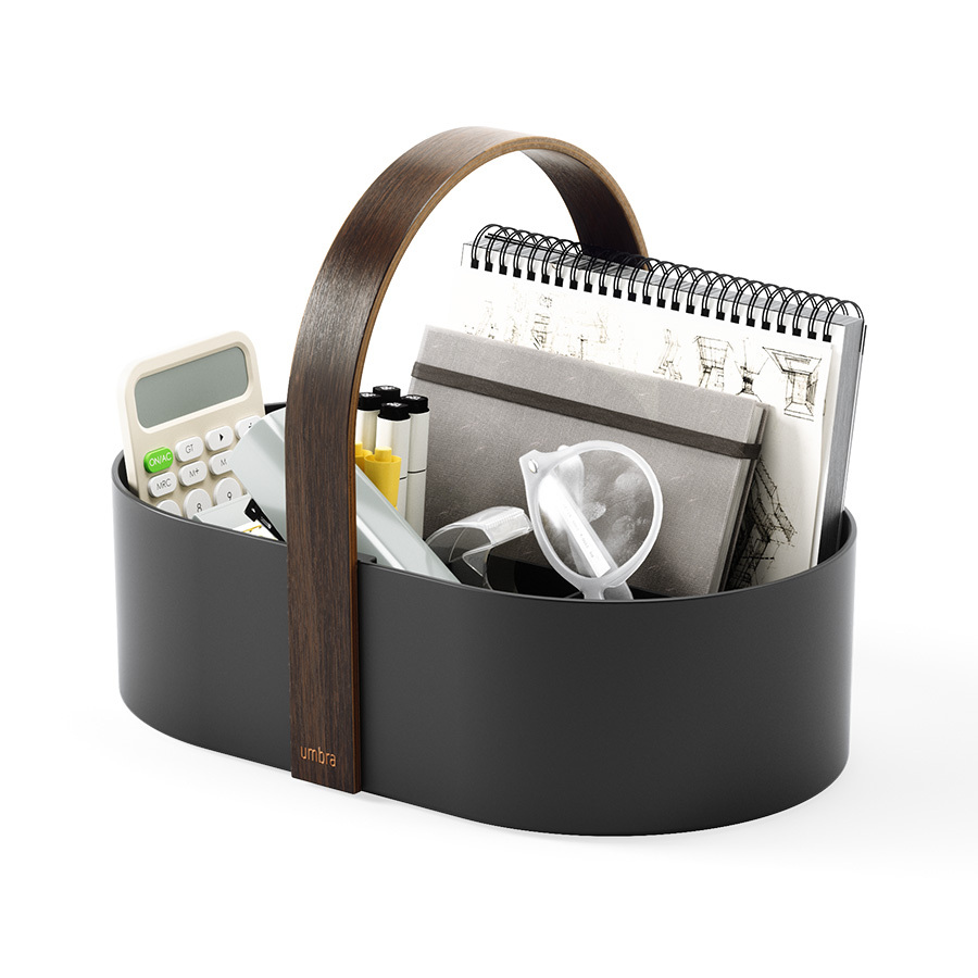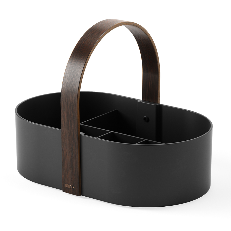 Органайзер Caddy – удобное решение для хранения косметики, уходовых средств, канцелярских принадлежностей, предметов для творчества, рукоделия и многого другого. Особенности и преимущества: - Основание из переработанного АБС- пластика легко очищается от загрязнений, не боится износа, долго сохраняет привлекательный вид. - Ручка из натурального дерева делает дизайн привлекательным и облегчает перемещение. - Съемный разделитель обеспечивает удобное и безопасное хранение различных предметов в вертикальном положении. - Резиновые ножки защищают поверхность от повреждений. Материалы: переработанный АБС-пластик, тополь, ясень. Размеры: 30х20х23 см. Цвет: черный/орех. Пыль и загрязнения можно удалять при помощи мягкой влажной губки или салфетки. Запрещается использования абразивных чистящих средств и агрессивной бытовой химии. После очищения аксессуар рекомендуется вытереть сухой тканью.