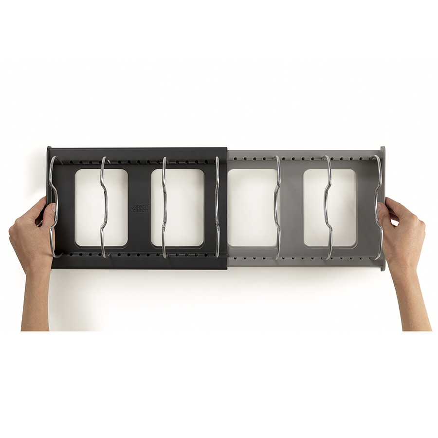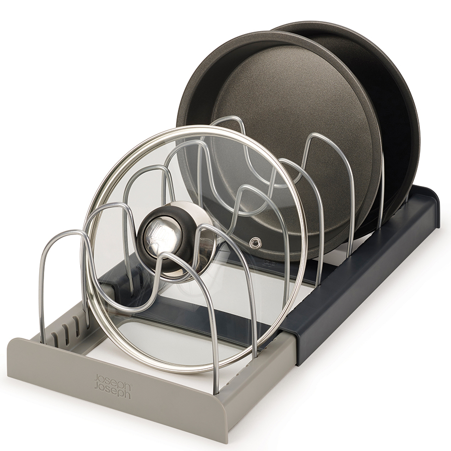 Этот удобный органайзер обеспечит организованное хранение кухонной утвари. Идеально подходит для кастрюль, крышек и аксессуаров для выпечки. Органайзер включает 7 регулируемых проволочных разделителей с изгибами для ручек. Длина регулируется от 30,5 см до 56 см. Следует протирать влажной тканью. Не используйте агрессивные химические чистящие средства.