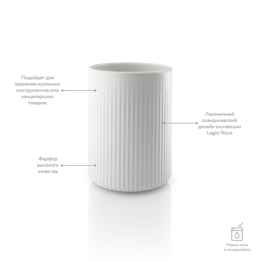 Органайзер для кухонных приборов Legio Nova поможет максимально освободить рабочее пространство на вашей кухне. Наружную поверхность банки дизайнеры украсили деликатной рифленой отделкой. Банка подходит для хранения не только кухонной утвари, но и канцелярских принадлежностей.
