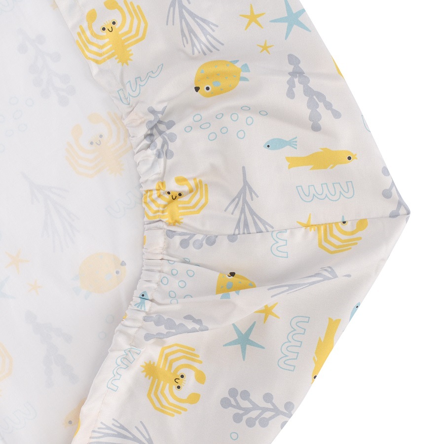 Простыня на резинке из сатина с принтом oceania world из коллекции tiny world, 90х200х28 см