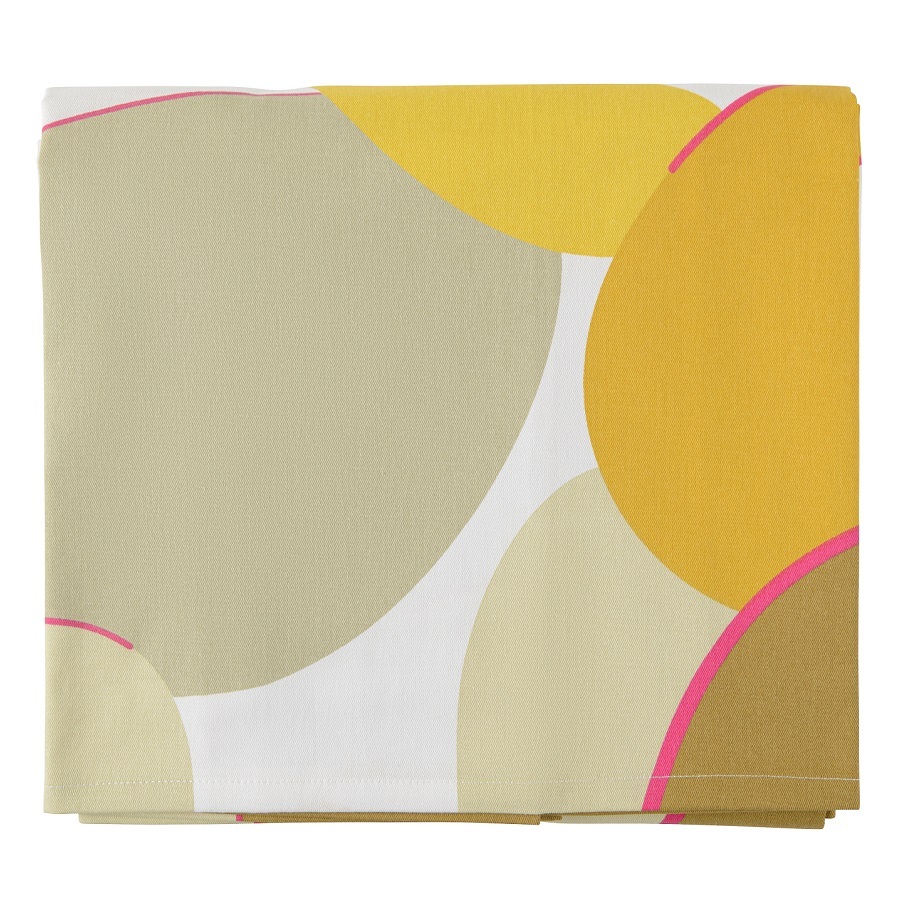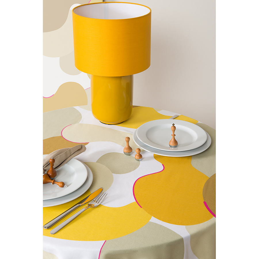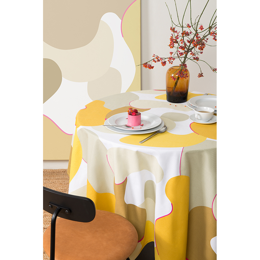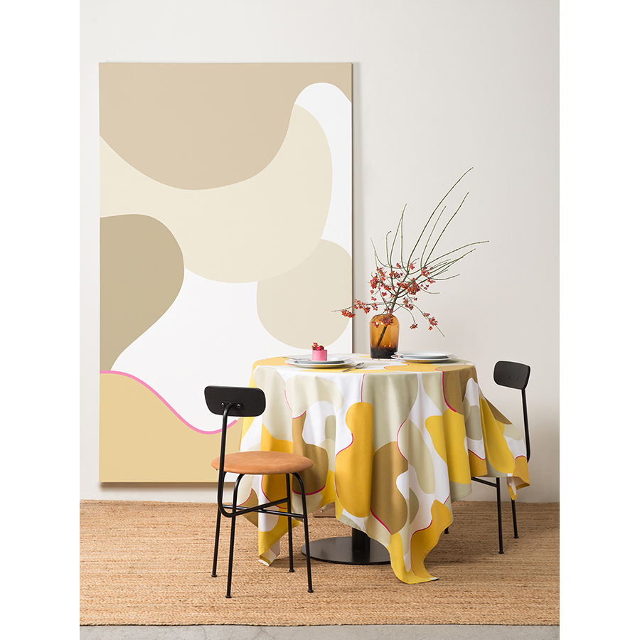 Скатерть из хлопка горчичного цвета с авторским принтом из коллекции Freak Fruit станет центральным элементом сервировки стола. Абстрактный принт не имеет повторяющегося раппорта и представляет собой единую законченную картину.