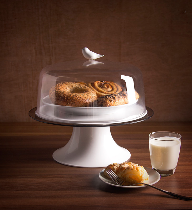Красивая тортовница решает проблему подачи тортиков и самодельных пирогов. Плюс ко всему, она идеальна для хранения: вкусности внутри не заветрятся, на них случайно не попадет грязь, а домашние животные не стащат ни кусочка. Можно использовать для блинов, пирожных, нарезанных фруктов, тарталеток и других вкусностей. Дополнительная опция: на широкий поддон можно налить немного воды, чтобы предотвратить атаку насекомых на продукты.
