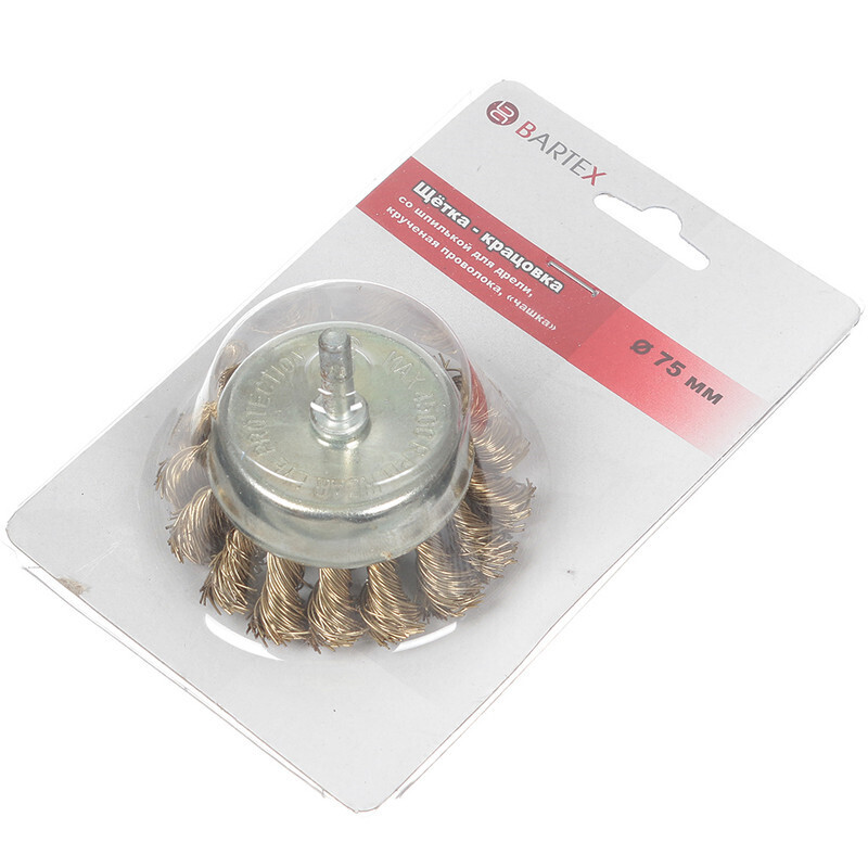 Щетка для дрели Bartex, 75 мм, чашка со шпилькой, крученая проволока, 88475, шт