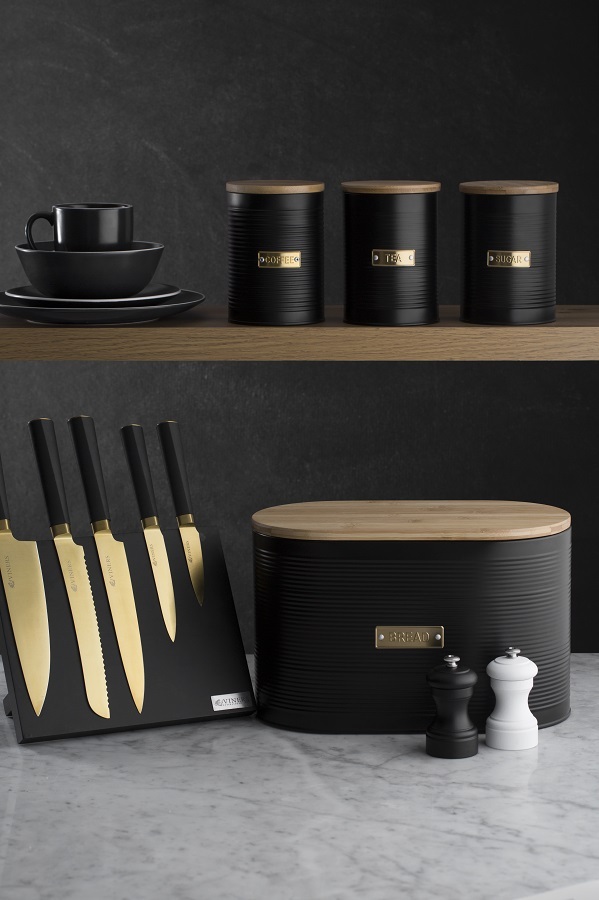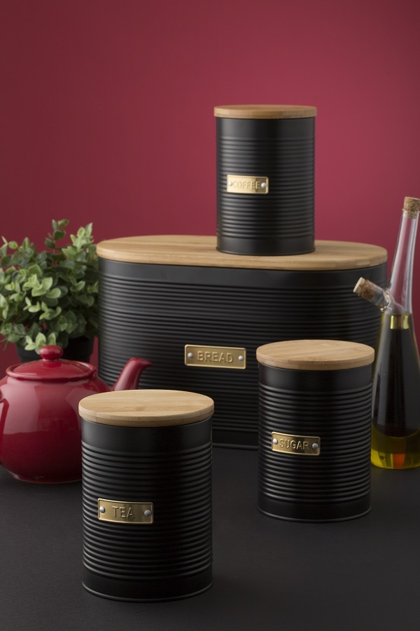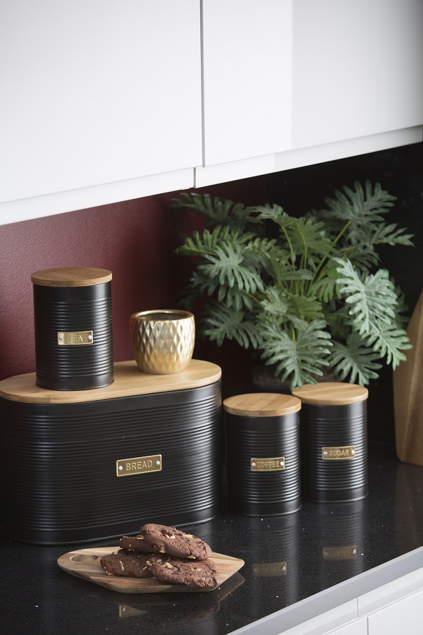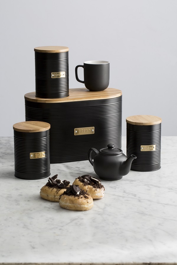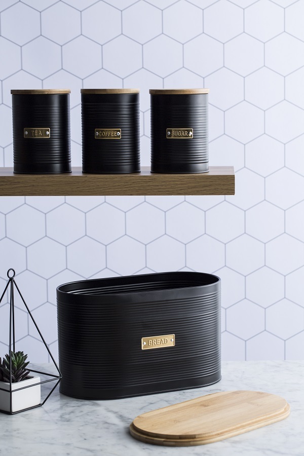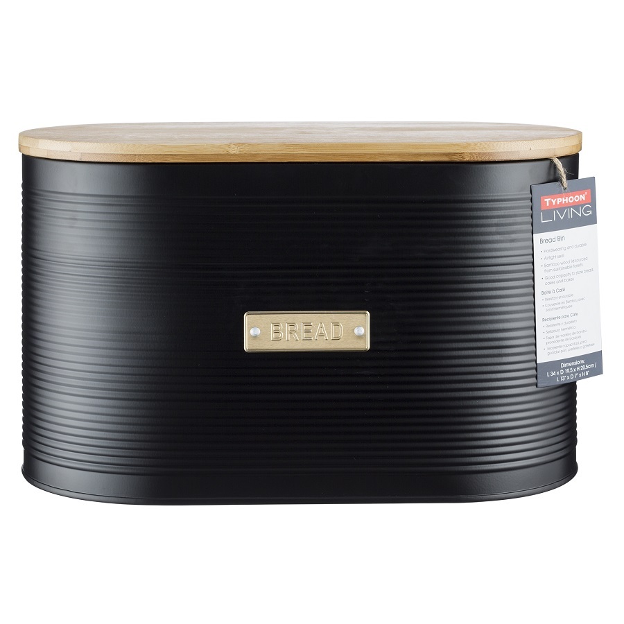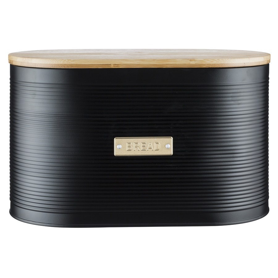 Стильная хлебница Otto на долгое время сохранит любимую выпечку свежей. Для украшения модели дизайнеры используют золотистый декор, который безупречно сочетается с матовым покрытием черного цвета. За счет этого хлебница идеально впишется в классический или современный интерьер кухни. Корпус изделия выполнен из прочной углеродистой стали, которая отличается прочностью и износостойкостью. Хлебница дополнена бамбуковой крышкой, которая при необходимости может служить разделочной доской.