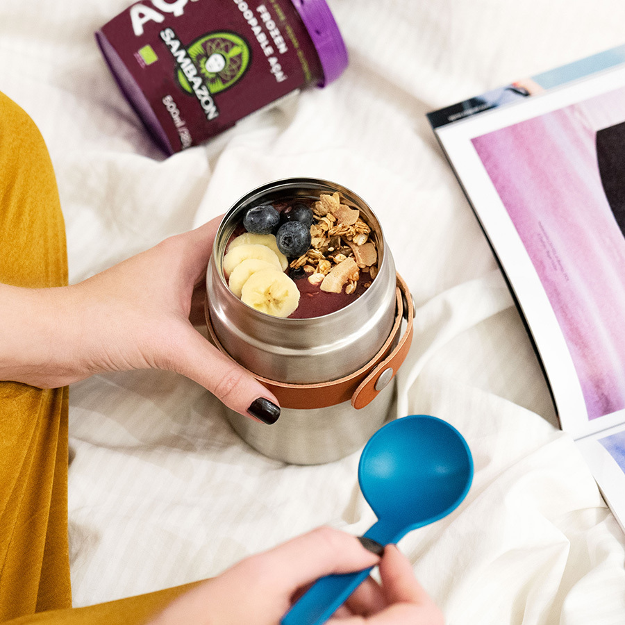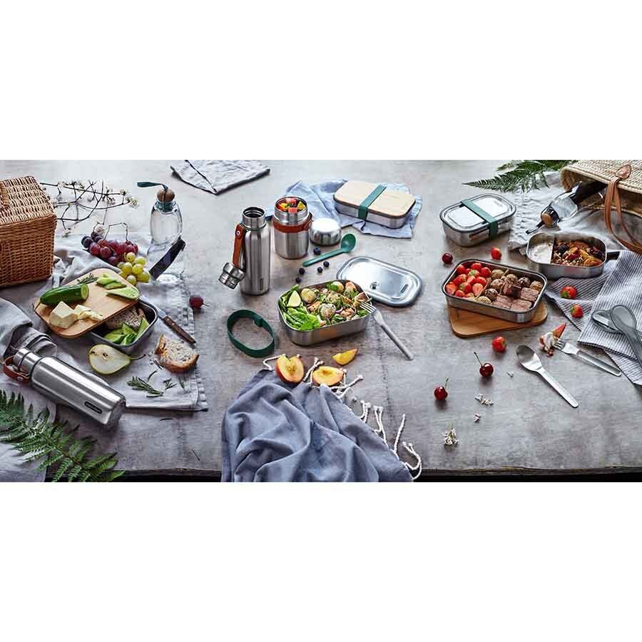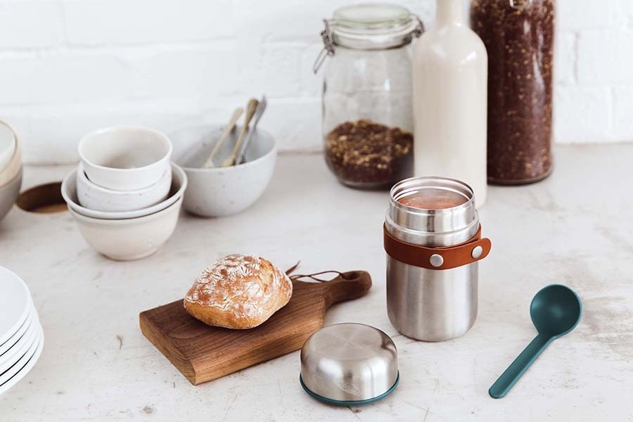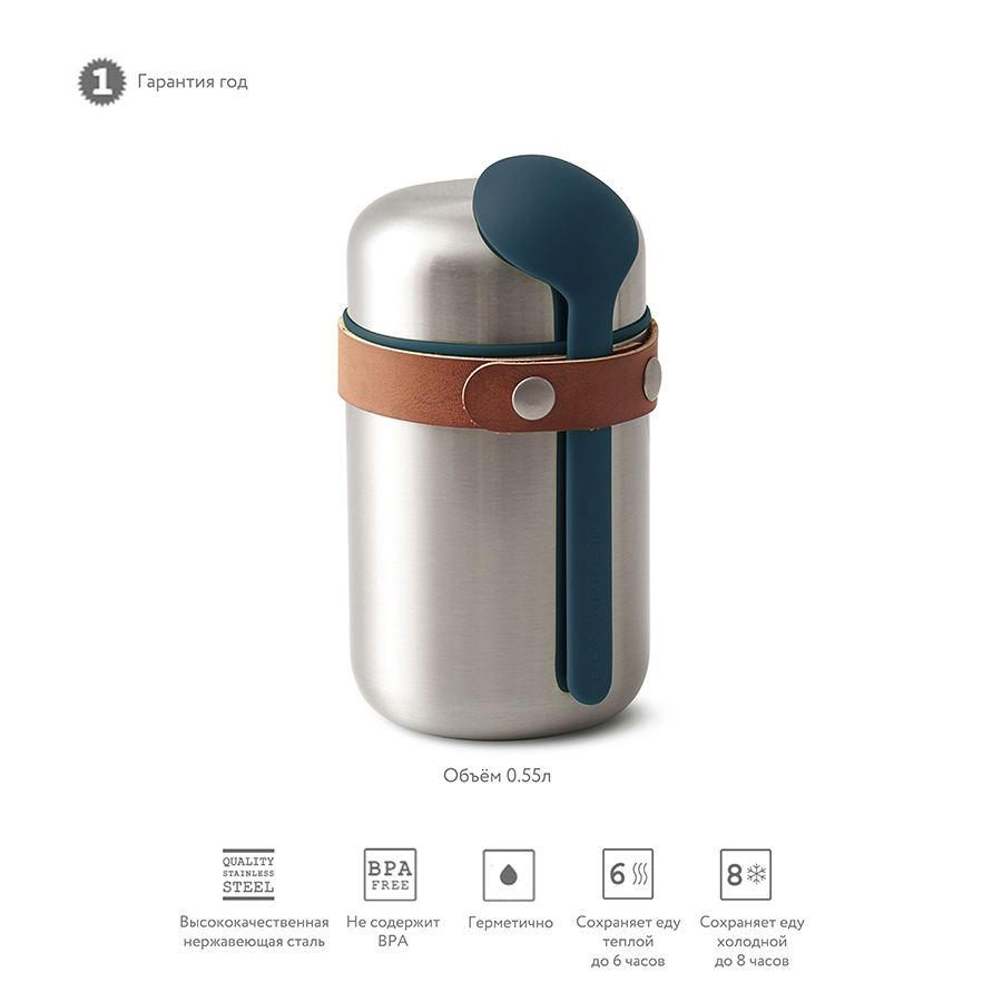 Красивый и функциональный термос для горячего из нержавеющей стали объемом 400 мл. В комплект входит ложка, закрепленная на корпусе при помощи ремня. Корпус термоса целиком выполнен из нержавеющей стали. Двойные стенки позволяют сохранять температуру горячих блюд до 6 часов и холодных – до 8 часов. Крышка изнутри покрыта экологически безопасным полипропиленом, для дополнительной герметичности имеется силиконовая прокладка. Ложка крепится к корпусу при помощи ремня из искусственной кожи. Все части контейнера отсоединяются, что позволяет легко мыть его в посудомоечной машине. Термос для горячего Food Flask позволит взять с собой на работу или в путешествие любые виды горячих блюд, включая супы. Емкость идеально вмещает объем полной стандартной глубокой тарелки. Ложка в комплекте сконструирована таким образом, чтобы доставать до самого дна, и никогда не потеряется в сумке из-за стильного решения с ремнем из искусственной кожи. Минималистичный дизайн с элементами ретро придется по вкусу самым взыскательным критикам и ценителям эстетики в повседневной жизни. Не содержит вредные Бисфенол-А(BPA) и фталаты.