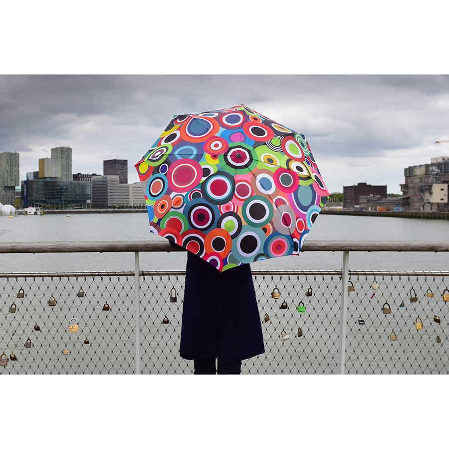 Яркий зонт защитит от непогоды и поднимет настроение в пасмурный день.